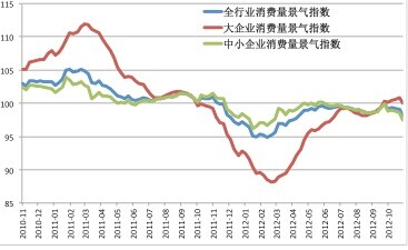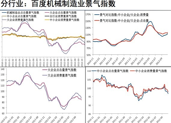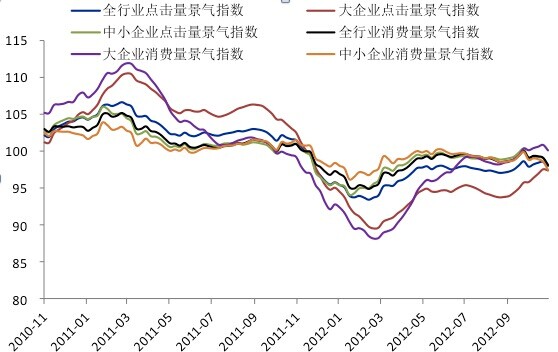 一个规律是:小企业指数是市场反应最灵敏的指标,小企业指数走势先行于全部企业;全部企业走势先行于大企业