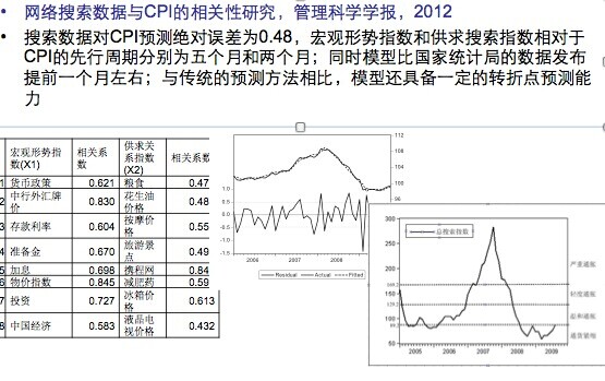 这些方法在常规条件下比较有效,但是当市场常受到大规模促销、社会或自然事件影响时,传统方法对市场最新变化和突发事件的捕获能力很有限。互联网数据为预测研究开辟了新空间,网络数据记录了数亿用户点击行为、搜索意图、倾向性、情绪,其优势有: