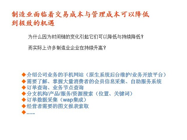王甲佳:各位朋友好,根据主持人的安排,今天我做一个简短的分享。期待大家指正。题目是传统企业向移动互联网转型的话题。这个题目我在许多场合讲过,今天通过微信来分享还是第一次。