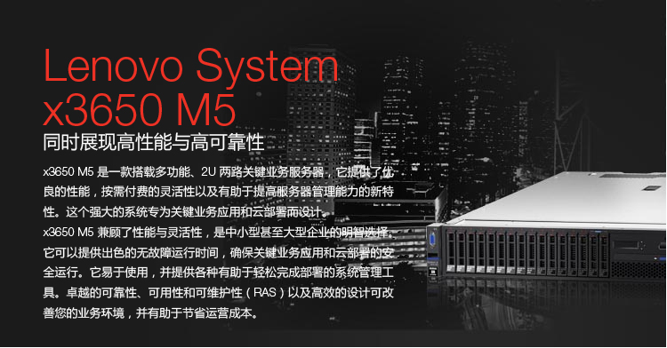 System x3650 M5系列服务器是一款全新推出的双路机架式服务器,这款服务器采用了全新机箱以及硬件规格,在性能基础和硬件扩展能力方面与上一代相比都具有明显的提升,能够为中小企业用户带来更好的服务。