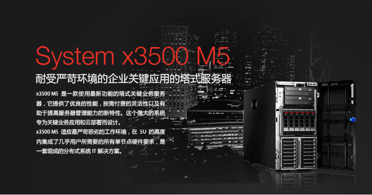 System x3500 M5系列是一款5U塔式服务器,整机具备强大的性能实力,能够承担大型企业的多种业务需要,理想的可靠性和稳定性更为用户带来出色使用体验。