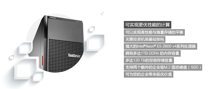 ThinkServer TD350系列凭借业内最高的90TB存储容量和显著低于机架式基础设施的成本,成为运行业务分析、大型数据库和协作应用等工作负载的成长型企业的理想解决方案。