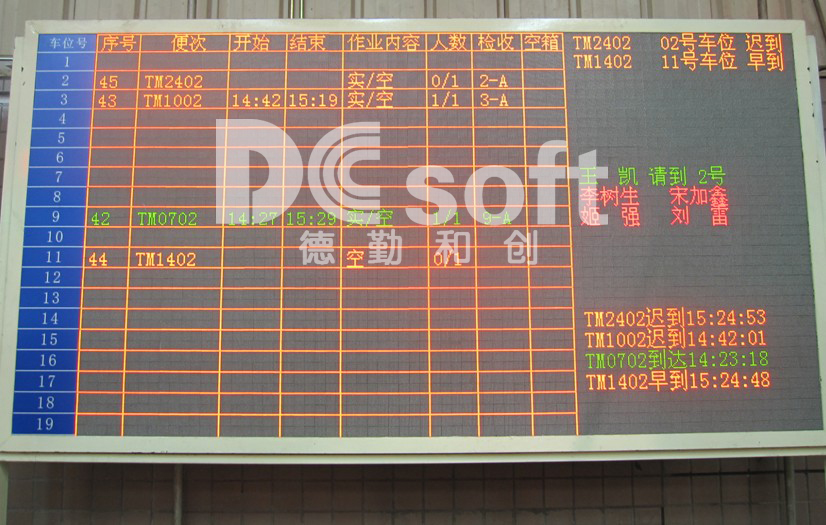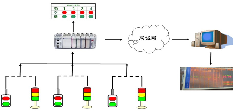 本系统采用可编程控制器(PLC)技术和高亮LED电子产品。主要实现车辆作业流程的有序管理。以应对作业区内车辆和作业员集中的部门。用自动控制调节现场作业秩序,提高生产效率。
