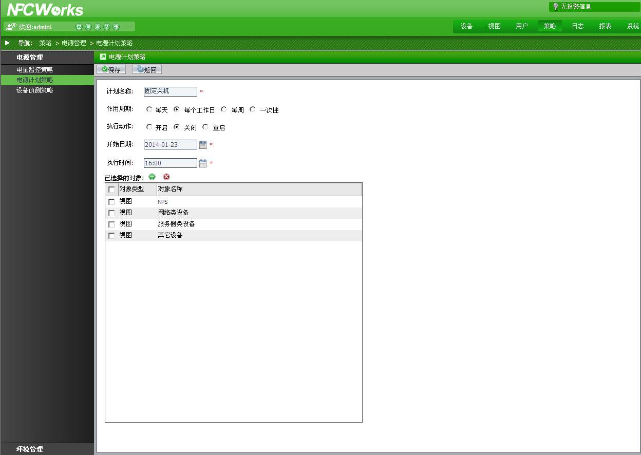 • 自动执行“开启、关闭或重启”操作,支持“天、周”不同周期,管理精细化,自动化程度高,实现无