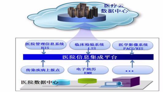 比如非常著名的医疗云:医院的HIS系统通过网络连接到卫生部门的数据中心。