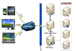通过XenApp用户不管使用的是何种客户端、操作系统或设备都能安全及时 地访问公司应用和数据,如台式PC、笔记本电脑、Macintosh、瘦客户端及 移动设备如iPhoneTM、Windows Mobile或Android手机等。